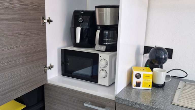 Die Ferienwohnung besteht aus zwei Schlafzimmern, einem Wohnzimmer und einer voll ausgestatteten Küche mit Kühlschrank und Kaffeemaschine. Es gibt ein Badezimmer mit Dusche. Handtücher und Bettwäsche werden zur Verfügung gestellt. Die Unterkunft ist zudem eine Nichtraucherunterkunft.