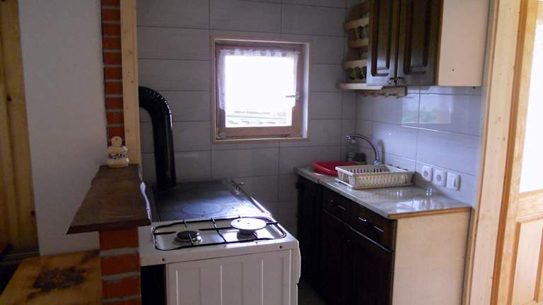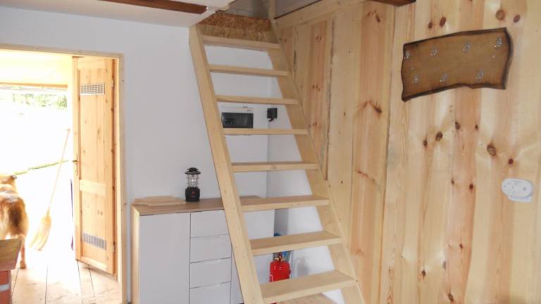 Das Ferienhaus besteht aus einem Schlafzimmer, einem Wohnzimmer und einer gut ausgestatteten Küche mit Kühlschrank. Handtücher und Bettwäsche werden bereitgestellt.