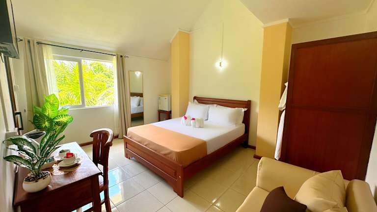 Die klimatisierten Zimmer sind ausgestattet mit einem Kleiderschrank, Wasserkocher, Kühlschrank, Safe, Flachbild-TV und eigenem Badezimmer mit Bidet. Ausgewählte Zimmer verfügen zudem über eine Küchenzeile mit Ofen, Mikrowelle und Herdplatte. Bettwäsche und Handtücher sind bereitgestellt.