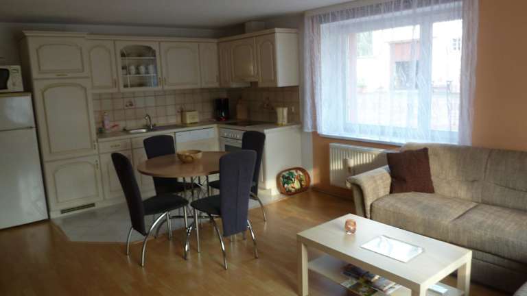 Die Ferienwohnung umfasst 1 Schlafzimmer, ein Wohnzimmer mit Flachbild-TV, eine gut ausgestattete Küche mit Kühlschrank und Geschirrspüler sowie 1 Badezimmer mit Dusche. Handtücher und Bettwäsche werden zur Verfügung gestellt.