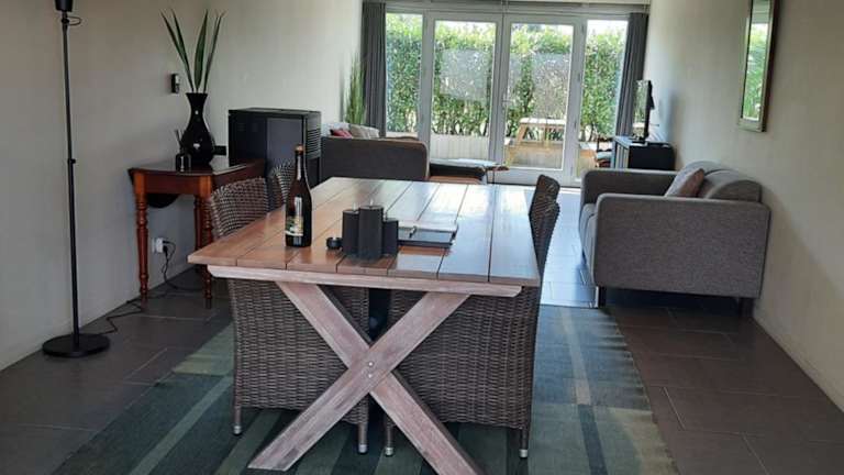 Das Ferienhaus umfasst zwei Schlafzimmer, ein Wohnzimmer mit einem Flachbild-TV, eine gut ausgestattete Küche mit Kühlschrank und Geschirrspüler sowie ein Badezimmer mit Dusche. Handtücher und Bettwäsche werden bereitgestellt.