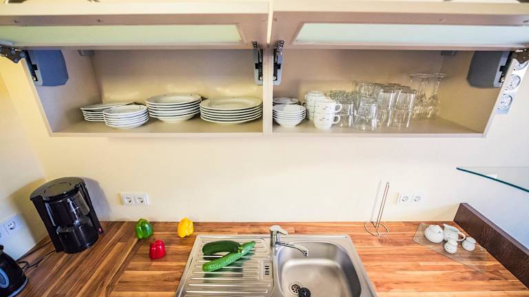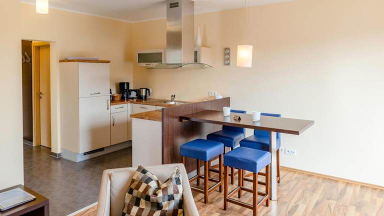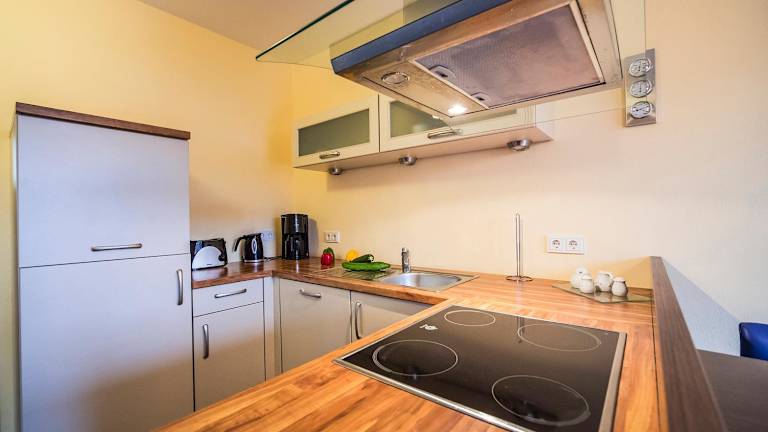 Die Ferienwohnung umfasst ein Schlafzimmer und ein Wohnzimmer, das mit einem Flachbild-TV mit Satellitenkanälen ausgestattet ist. Die voll ausgestattete Küche verfügt über einen Kühlschrank und einen Geschirrspüler. Ein Badezimmer sowie Handtücher und Bettwäsche werden zur Verfügung gestellt.