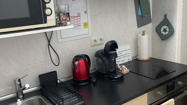 Die Ferienwohnung umfasst 1 Schlafzimmer, ein Wohnzimmer und eine voll ausgestattete Küchenzeile mit Kühlschrank und Kaffeemaschine. Das Badezimmer ist mit einer Dusche und kostenlosen Pflegeprodukten ausgestattet. Handtücher und Bettwäsche werden bereitgestellt.