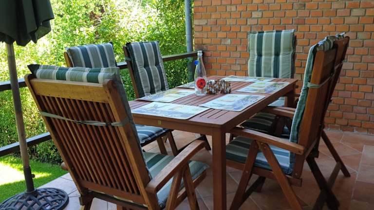 Das Ferienhaus verfügt über ein Schlafzimmer und ein Wohnzimmer. Eine vollständig ausgestattete Küchenzeile mit Kühlschrank und Kaffeemaschine ist ebenfalls vorhanden. Zusätzliche Annehmlichkeiten sind eine Klimaanlage sowie ein Badezimmer mit Dusche und Haartrockner. Handtücher und Bettwäsche werden bereitgestellt.