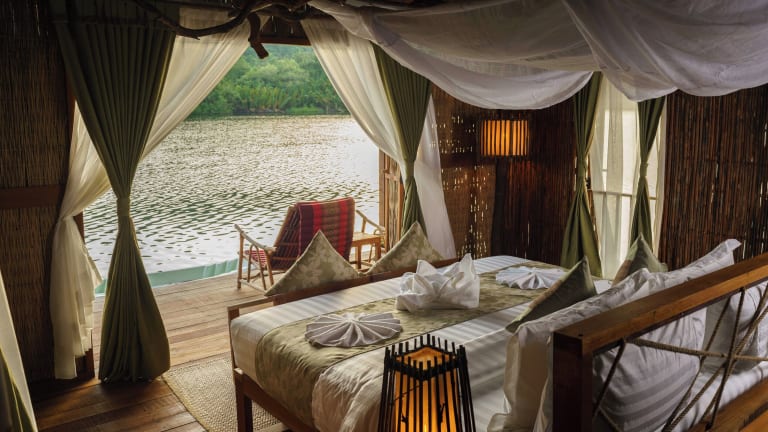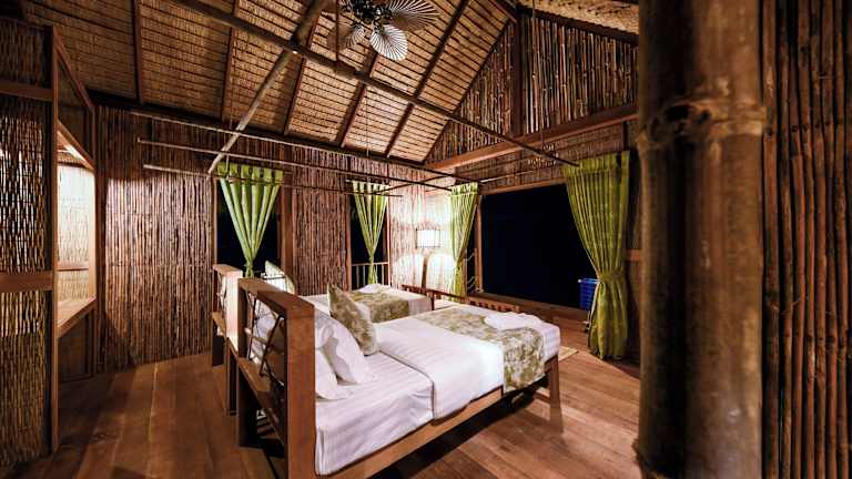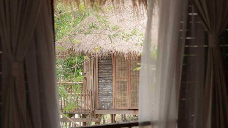 Die 12 Holzunterkünfte im Khmer-Stil bieten den Gästen ein authentisches und gemütliches Ambiente. Die Zimmer sind mit Holzmöbeln ausgestattet und verfügen über einen Deckenventilator und einen Haartrockner. Auf Anfrage kann ein zusätzlicher Ventilator zur Verfügung gestellt werden. In jedem Zimmer finden Sie außerdem Bademäntel, Hausschuhe und ein Moskitonetz, um Ihren Aufenthalt so angenehm wie möglich zu gestalten. Das eigene Badezimmer verfügt über frisches Bergquellwasser, kostenfreie Pflegeprodukte und eine einladende Holzbadewanne.