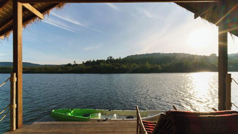 Das Koh Andet Eco Resort liegt malerisch am Tatai-Fluss, umgeben von üppiger Natur und bietet eine ruhige und entspannte Umgebung. Die atemberaubende Aussicht auf die umliegenden Berge macht den Aufenthalt zu einem unvergesslichen Erlebnis. Die nahegelegenen Wasserfälle und die Küste mit ihren Mangroven bieten zahlreiche Möglichkeiten für Aktivitäten in der Natur.