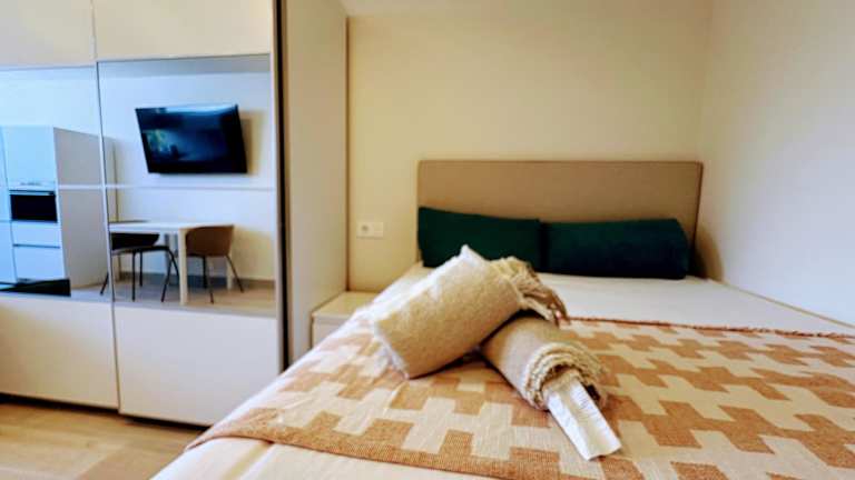 Die Ferienwohnung ist mit einem Schlafzimmer, einer Küchenzeile ausgestattet, die über einen Kühlschrank und eine Mikrowelle verfügt. Des Weiteren gibt es ein Badezimmer mit einer Dusche, einem Haartrockner und einer Waschmaschine. Handtücher und Bettwäsche werden zur Verfügung gestellt, um den Gästen eine bequeme Zeit zu ermöglichen.