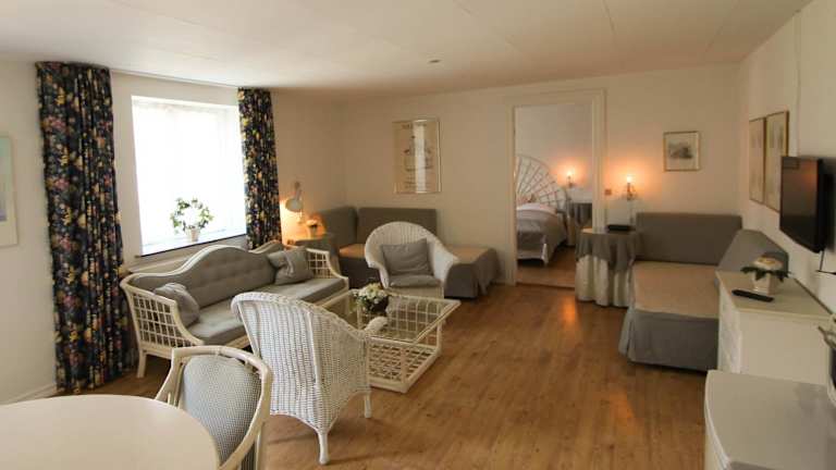 Die Zimmer im Kokkedal Slotshotel sind mit einem Schreibtisch, eigenem Badezimmer mit Dusche und kostenlosen Pflegeprodukten sowie Bettwäsche und Handtüchern ausgestattet. Jedes Zimmer bietet einen Blick auf das Meer.