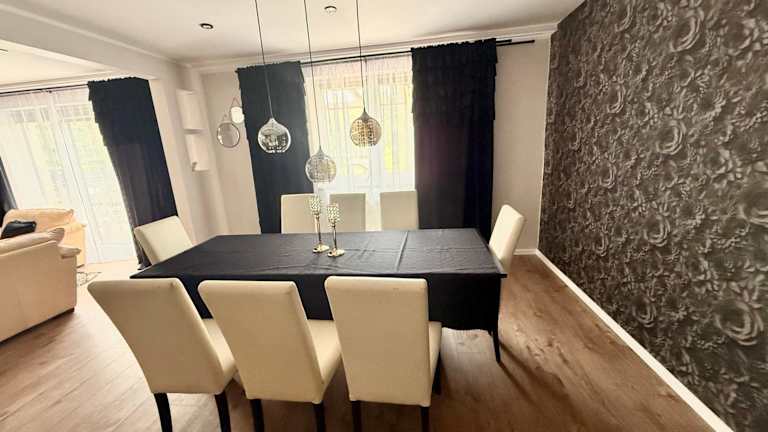 Das Ferienhaus umfasst 5 Schlafzimmer und eine gut ausgestattete Küche mit Kühlschrank und Geschirrspüler. Ein Flachbild-TV, ein Sitzbereich sowie 2 Badezimmer mit Dusche gehören ebenfalls zur Ausstattung. Handtücher und Bettwäsche werden bereitgestellt. Gäste können zudem eine Terrasse in der Unterkunft nutzen.