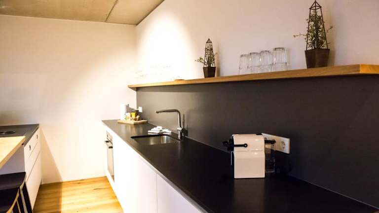 In der Unterkunft steht eine voll ausgestattete Küche zur Verfügung. Diese beinhaltet einen Kühlschrank, Geschirrspüler, Ofen, Herdplatte, Toaster, Kaffeemaschine und Wasserkocher, um die Selbstversorgung zu erleichtern.
