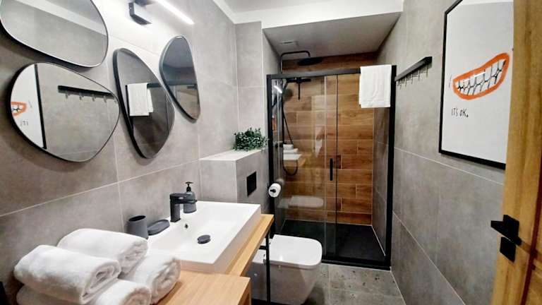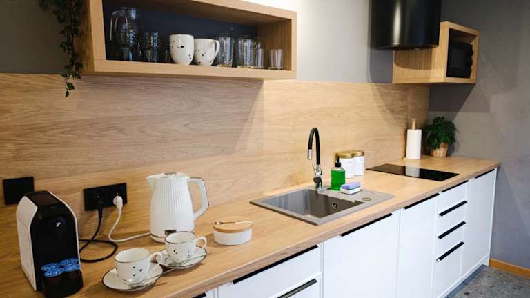 Die Unterkunft ist ausgestattet mit einem Flachbild-TV sowie einem eigenen Badezimmer mit Dusche und Haartrockner. Eine Küchenzeile mit Kühlschrank, Geschirrspüler, Mikrowelle, Herdplatte, Kaffeemaschine und Wasserkocher sorgt für die nötige Bequemlichkeit während des Aufenthalts.