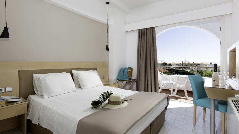 Die Zimmer im Kolymbia Sun Hotel sind klimatisiert, geräumig und geschmackvoll eingerichtet. Sie verfügen über Sat-TV, einen Minikühlschrank und einen Safe. Jedes Zimmer hat ein eigenes Badezimmer mit Pflegeprodukten und einem Haartrockner. WLAN ist im gesamten Hotel kostenlos verfügbar.