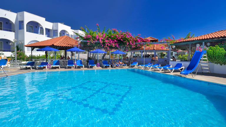 Buchen Sie das Kolymbia Sun Hotel für einen entspannten Urlaub in Kolymbia. Das Hotel bietet einen Pool, ein separates Kinderbecken und eine große Sonnenterrasse. Die Zimmer sind geräumig und bieten einen privaten Balkon mit Blick auf den schönen Garten. WLAN ist kostenlos verfügbar. Genießen Sie das All-Inclusive-Angebot mit griechischen und internationalen Speisen und entspannen Sie bei Drinks und Cocktails an den beiden Bars. Das Hotel liegt nur 180 m vom Strand entfernt und bietet eine Vielzahl von sportlichen Aktivitäten und Unterhaltungsprogrammen.