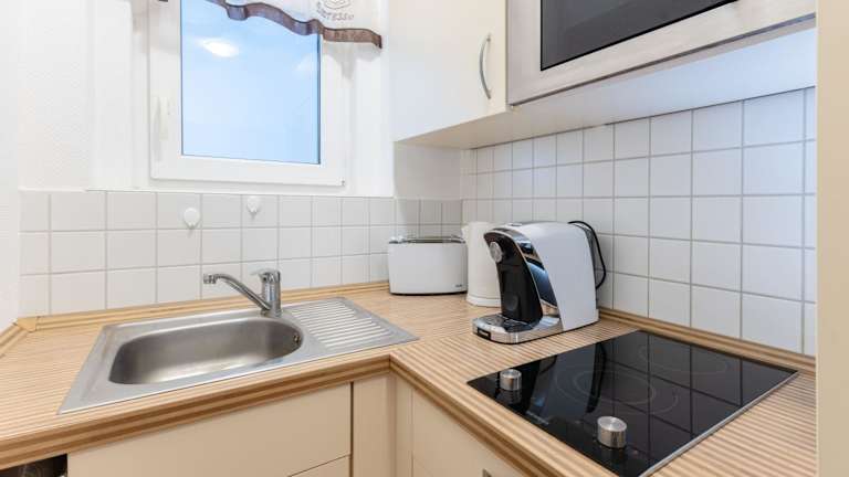 Essenslieferung in die Unterkunft ist möglich. In der voll ausgestatteten Küche der Ferienwohnung befinden sich ein Kühlschrank und eine Kaffeemaschine. Snacks wie Zopf oder Gipfeli können bequem zubereitet werden.