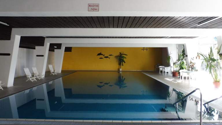 Gäste haben die Möglichkeit, im Innenpool zu schwimmen, im Garten zu entspannen oder die Umgebung beim Wandern und Skifahren zu erkunden.