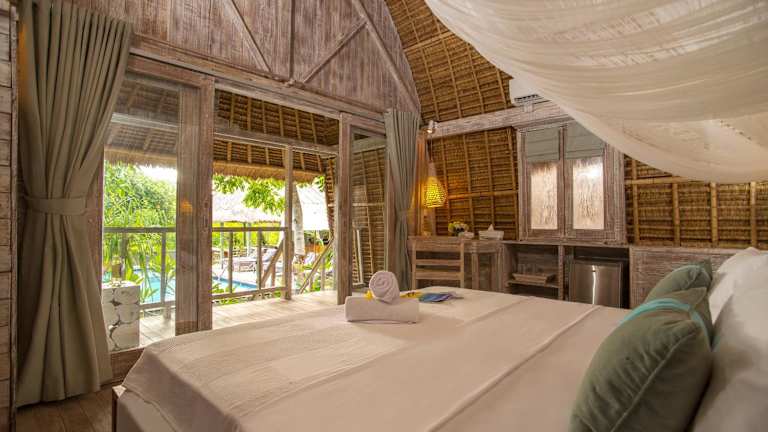 Die Zimmer im Komodo Garden sind im traditionellen Lumbung-Stil mit Holzelementen gestaltet und verfügen über Klimaanlage, Safe, Minibar sowie ein eigenes Bad mit Dusche und kostenfreien Pflegeprodukten. Die Gäste können die gemütliche Terrasse mit Blick auf den Garten und den Pool nutzen.