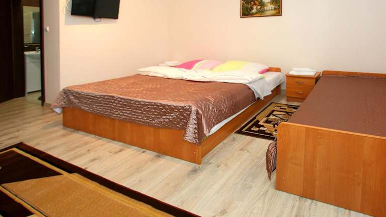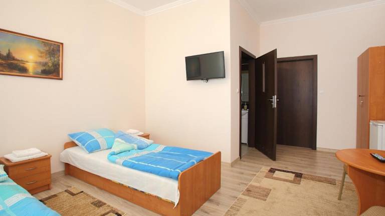 Jedes Zimmer im Kompleks Perła hat Fliesenböden, einen TV und einen Kühlschrank. Die Bäder sind mit einer Dusche ausgestattet. Für zusätzlichen Komfort sind einige Zimmer klimatisiert, wobei hierfür eine Gebühr anfällt. Gästen stehen weitere Dienstleistungen wie Zimmerservice und tägliche Reinigung zur Verfügung.