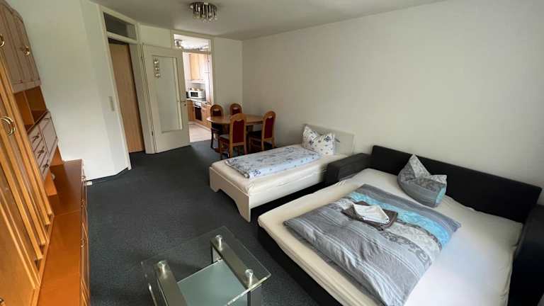 Komplette Wohnung in Wendelstein bei Nürnberg - Messenähe bietet eine gemütliche Ferienwohnung mit modernem Komfort und einem Balkon mit Blick auf den Garten. Die Unterkunft verfügt über ein Wohnzimmer, ein Schlafzimmer, eine gut ausgestattete Küche und ein Badezimmer mit Dusche. Zusätzlich stehen Handtücher und Bettwäsche bereit. Für Gäste sind auch Haustiere erlaubt.
