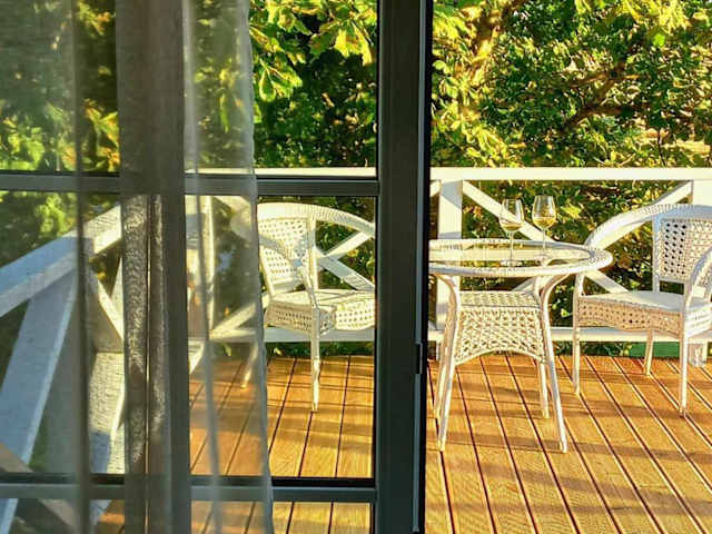 Die Ferienwohnung ist klimatisiert und umfasst ein Schlafzimmer sowie eine voll ausgestattete Küche.