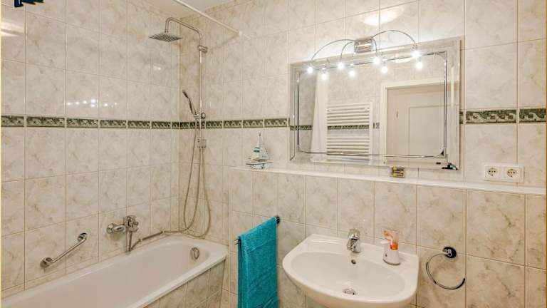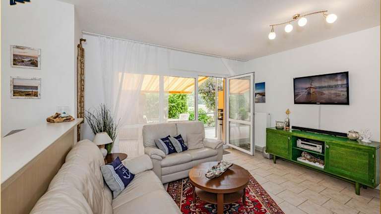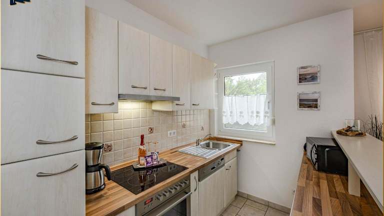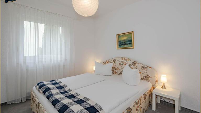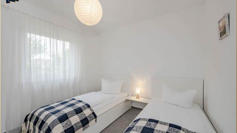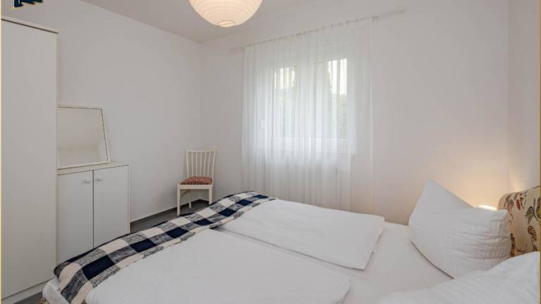 Die Ferienwohnung verfügt über zwei Schlafzimmer und ist ausgestattet mit einem Flachbild-TV mit Satellitenkanälen. Die voll ausgestattete Küche beinhaltet einen Kühlschrank, Geschirrspüler, Waschmaschine, Ofen sowie eine Mikrowelle.