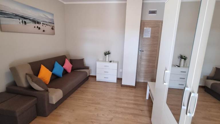 Jede Wohneinheit in der Unterkunft Kotwica hat ein eigenes Badezimmer mit Dusche, Klimaanlage, einen Flachbild-TV sowie einen Kühlschrank. Eine voll ausgestattete Küchenzeile mit Mikrowelle und Wasserkocher ist vorhanden. Die Unterkunft bietet zudem eine Terrasse.