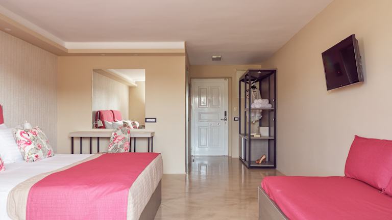 Our rooms are comfortable and furnished in a modern style, offering a range of facilities and services, designed for a pleasant and memorable stay. With a contemporary design enriched with vibrant colors, the chick room features a double or twin beds and a furnished balcony or terrace. The bathroom is fully equipped with Personal amenities.