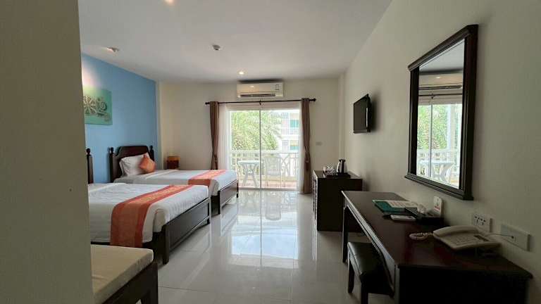 Das Krabi Front Bay Resort befindet sich am südlichen Ende der Stadt Krabi und bietet einen direkten Blick auf die Mündung des Flusses Krabi in die Andamanensee. In der Nähe liegen der Pier Klong Jirad und der Wochenend-Nachtmarkt, die beide bequem erreichbar sind. Den Flughafen Krabi erreichen die Gäste nach etwa 25 Minuten Autofahrt.