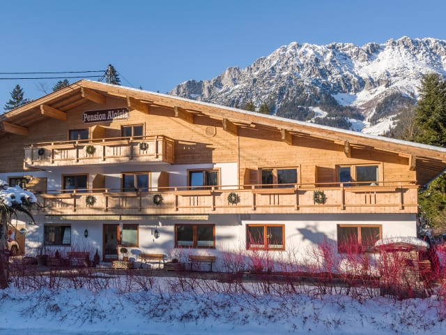 Pension Aloisia in Scheffau Das Tor zum Wilden Kaiser In unserem Garten finden Sie es tatsächlich - das Tor zum Kaisergebirge. Aus Kaisergranit steht es mitten in unserer Naturoase, in der Sie gleich beim Ankommen Wildkräuter schnuppern und den Alltag hinter Sich lassen. Willkommen in „Aloisia – der Kräuterpension“ in Scheffau am Wilden Kaiser! Direkt an der Südwestseite des mächtigen Massivs gelegen begeistert der Ort als idealer Ausgangspunkt für Wanderungen ins Naturschutzgebiet, auch Bergsteiger und Kletterer finden hier den optimalen Einstieg für eine Tour. Kein anderer Ort in Tirol ist den Kaisergipfeln so nahe. Aber auch die sanften Grasberge gegenüber laden mit einer Vielzahl an Routen zum Panoramawandern im Sommer und schier endlosem Pistenvergnügen im Winter. Bequem geht es mit der Gondel auf den Brandstadl, den zentralen Einstieg in die SkiWelt Wilder Kaiser-Brixental. Bei uns genießen Sie noch einen ganz besonderen Vorteil: vom Haus sind Sie zu Fuß in wenigen Minuten an der Talstation, ganz mühelos ohne Auto und Parkplatzsuche. Kommen Sie als Gast in unsere gemütliche und familiäre Pension Aloisia und kehren Sie als Freund wieder!