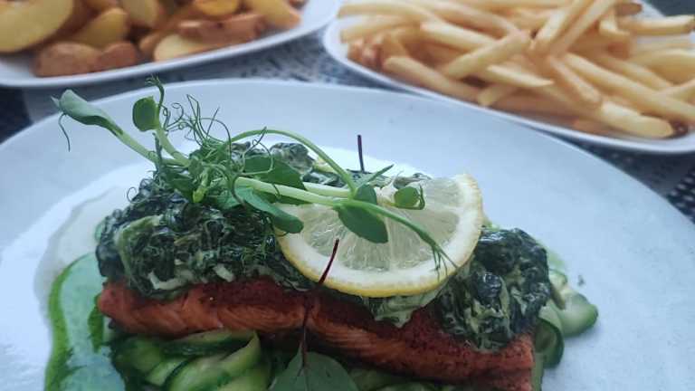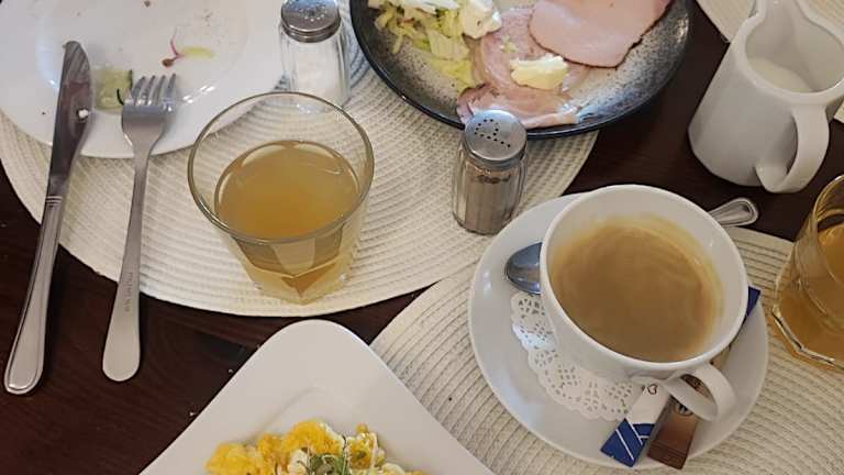 Das Frühstück beinhaltet kontinentale, vegetarische oder vegane Optionen. Das Restaurant hat während der Monate Juni bis Ende September täglich geöffnet, während es von Oktober bis Juni nur an Wochenenden zugänglich ist. Essensoptionen für spezielle Ernährungsbedürfnisse werden auf Anfrage angeboten.