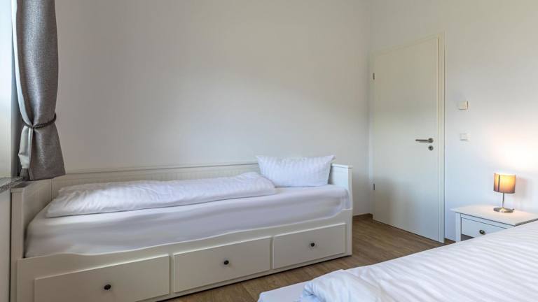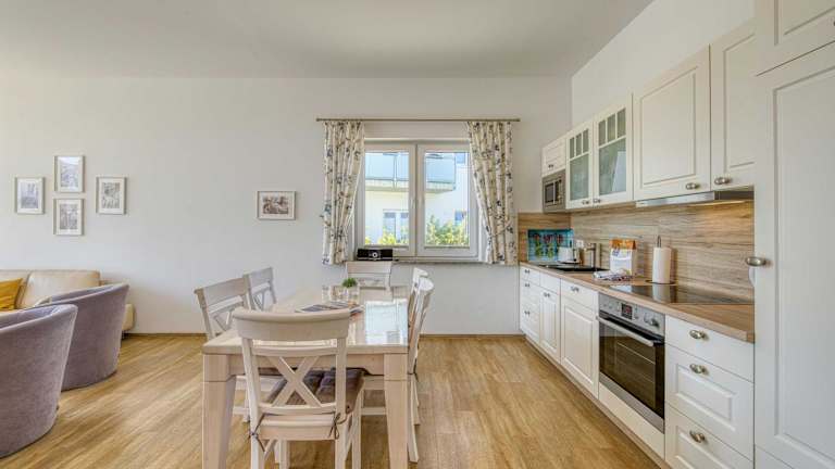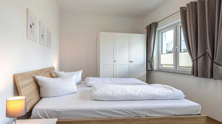 Die Ferienwohnung verfügt über zwei Schlafzimmer sowie eine geräumige Küche, die mit einem Kühlschrank und einem Geschirrspüler ausgestattet ist. Des Weiteren gibt es ein Badezimmer mit einer Dusche, einem Haartrockner und einer Waschmaschine. Handtücher und Bettwäsche werden bereitgestellt. In der Unterkunft dürfen keine Haustiere mitgebracht werden.
