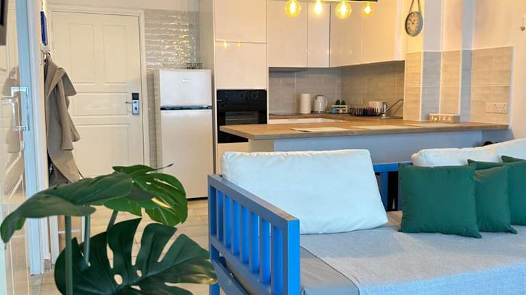 Das Krasas Beach befindet sich direkt gegenüber vom Strand Finikoudes in Larnaka. In der näheren Umgebung finden Gäste Restaurants, Bars, Geschäfte sowie die berühmte Lazarus-Kirche. Der Hafen liegt nur 350 Meter entfernt, und die Gemeinde von Larnaka sowie weitere kulturelle Highlights sind leicht zu erreichen. Der Flughafen Larnaka befindet sich 7 km entfernt, während die beliebten Strände von Nissi Beach und der Ferienort Ayia Napa nach 39 und 40 km erreichbar sind.