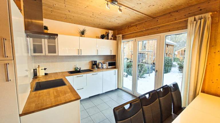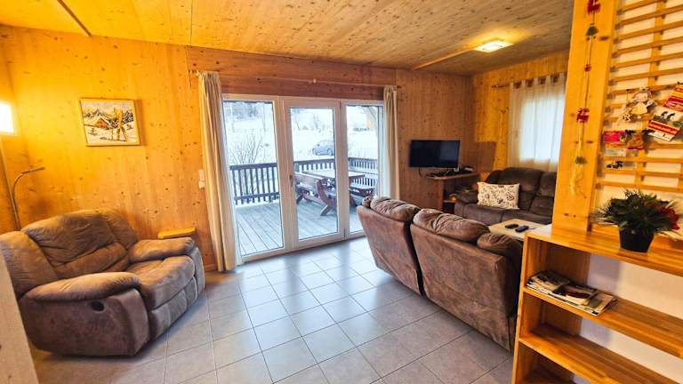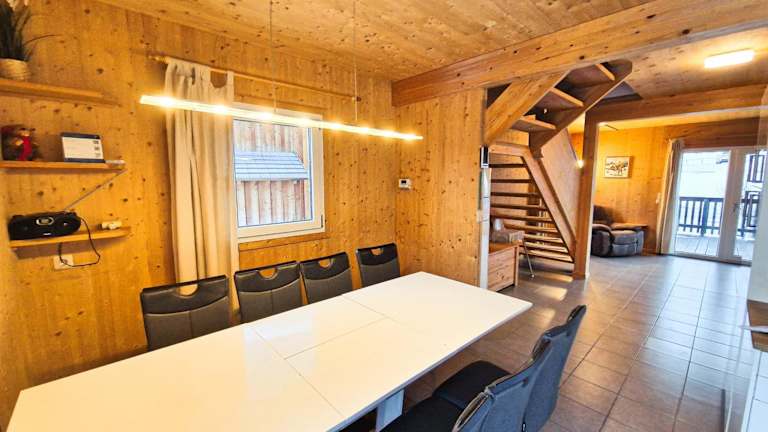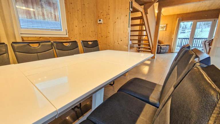 Das Chalet umfasst 4 Schlafzimmer, ein Wohnzimmer mit einem Satelliten Flachbild-TV, eine gut ausgestattete Küche und 2 Badezimmer mit Dusche und Badewanne. Handtücher und Bettwäsche werden zur Verfügung gestellt. Es sind kostenlose Privatparkplätze vorhanden.