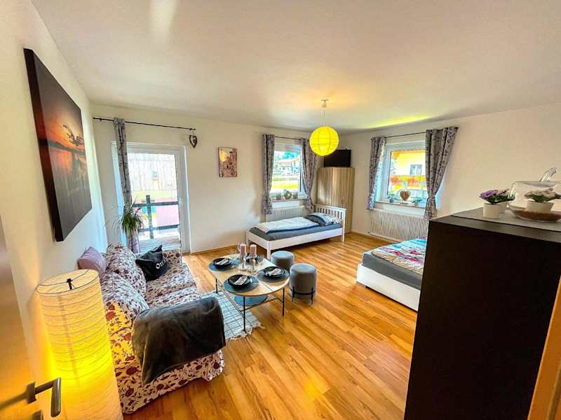 Die Ferienwohnung umfasst ein Schlafzimmer, ein Wohnzimmer sowie eine gut ausgestattete Küche mit Kühlschrank und Geschirrspüler. Zudem steht ein Balkon zur Verfügung. Handtücher und Bettwäsche werden bereitgestellt.