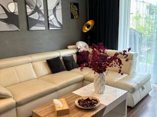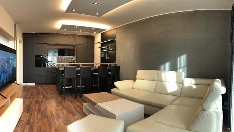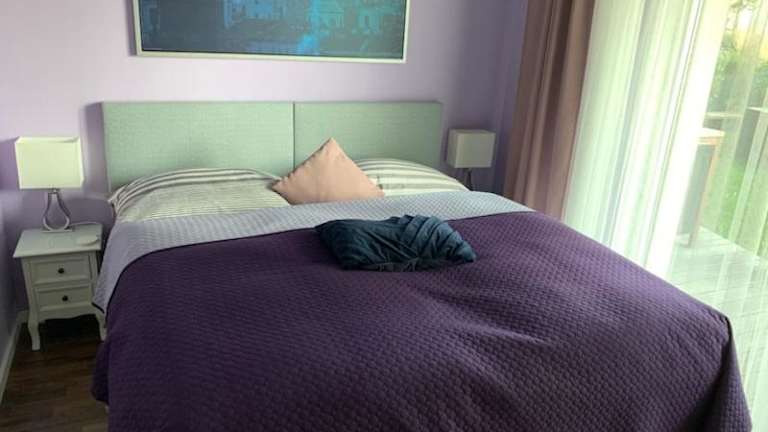 Die Ferienwohnung umfasst 2 Schlafzimmer, ein Wohnzimmer mit einem Flachbild-TV sowie eine gut ausgestattete Küche, die mit Kühlschrank und Geschirrspüler ausgestattet ist. Es steht ein Badezimmer mit Badewanne zur Verfügung. Handtücher und Bettwäsche werden bereitgestellt. Die Wohnung verfügt zudem über eine Terrasse mit Stadtblick.