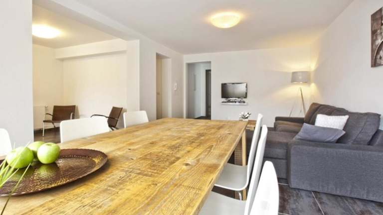 Die Ferienwohnung ist eingerichtet mit einem Wohnzimmer, das über einen Flachbild-TV mit Satellitenkanälen verfügt. Die voll ausgestattete Küche ist mit einem Kühlschrank und einem Geschirrspüler ausgestattet. Des Weiteren gibt es ein Badezimmer mit Dusche sowie Handtücher und Bettwäsche werden bereitgestellt.