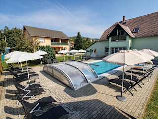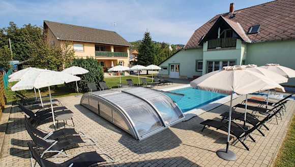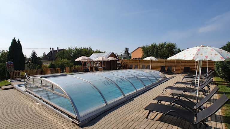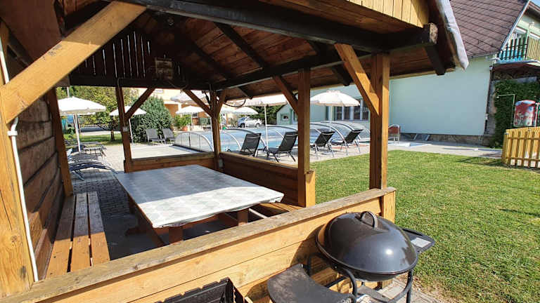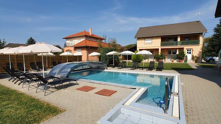 Krisztián Apartmanház bietet eine entspannte Atmosphäre mit einem Aussenpool, einem weitläufigen Garten und einer einladenden Terrasse mit Blick auf den Garten. Die Unterkunft ermöglicht den Gästen kostenloses Wifi und ist ein idealer Ort für erholsame Ferien.