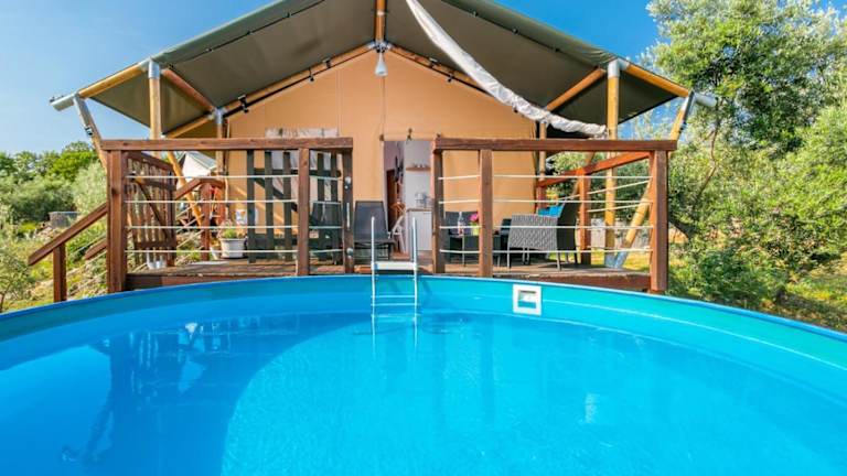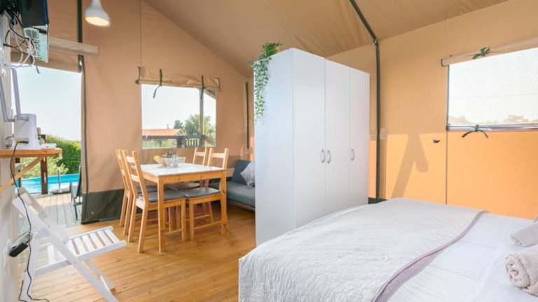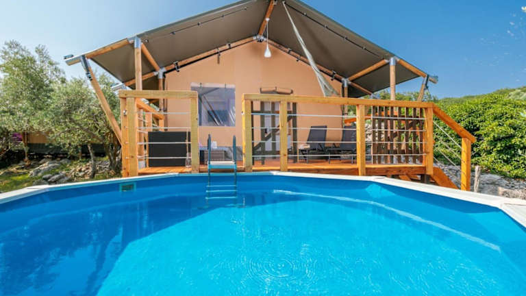 Die Unterkunft Krk Glamping Village besticht durch einen heimeligen Pool, kostenlose Velos sowie einen Garten mit Poolblick. Kostenfreies WLAN steht zur Verfügung. Die Ausstattung umfasst eine Terrasse mit Bergblick, einen gemütlichen Sitzbereich, einen Flachbild-TV mit Satellitenempfang sowie eine voll ausgestattete Küche, die mit Kühlschrank, Geschirrspüler, Mikrowelle, Herdplatte, Kaffeemaschine und Wasserkocher ausgestattet ist. Ein eigenes Badezimmer mit Dusche und kostenlosen Pflegeprodukten ist ebenfalls vorhanden.