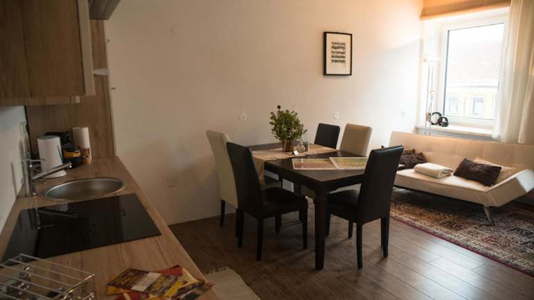 Das Apartment im Kronlachner's bietet ein komfortables Schlafzimmer, ein Badezimmer und einen Balkon mit Blick auf die Stadt. Die voll ausgestattete Küche ermöglicht es Ihnen, Ihre eigenen Mahlzeiten zuzubereiten, und der Essbereich bietet Platz für gemeinsame Mahlzeiten. Ein Flachbild-Sat-TV und Bettwäsche und Handtücher sind ebenfalls vorhanden.