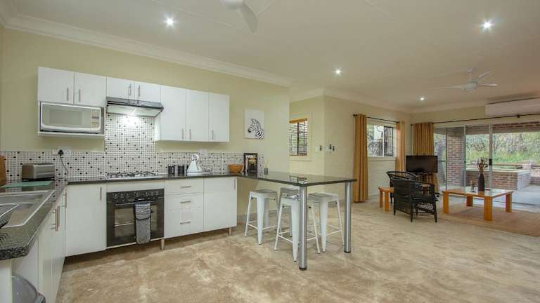 Die Unterkunft Kruger's Retreat House & Kruger's Rest Studio befindet sich in Marloth Park, einer ruhigen Umgebung in der Natur.