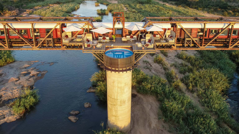 Das Hotel Kruger Shalati - Train on The Bridge & Garden Suites bietet ein außergewöhnliches Urlaubserlebnis in einem ehemaligen Zug auf der historischen Selati-Brücke. Die Unterkunft zeichnet sich durch elegante Waggon-Suiten mit Blick auf den majestätischen Sabie River aus und kombiniert luxuriösen Komfort mit dem Safari-Charme der 1920er Jahre. Zu den Annehmlichkeiten zählen zwei Außenpools, Hängematten und Liegestühle für Entspannung. Das Hotel ist ein Nichtraucherhotel und ist für Gäste ab 12 Jahren geeignet. Es wird ein 24-Stunden-Rezeptionservice angeboten, und das Hotel ist nicht für Haustiere zugänglich.