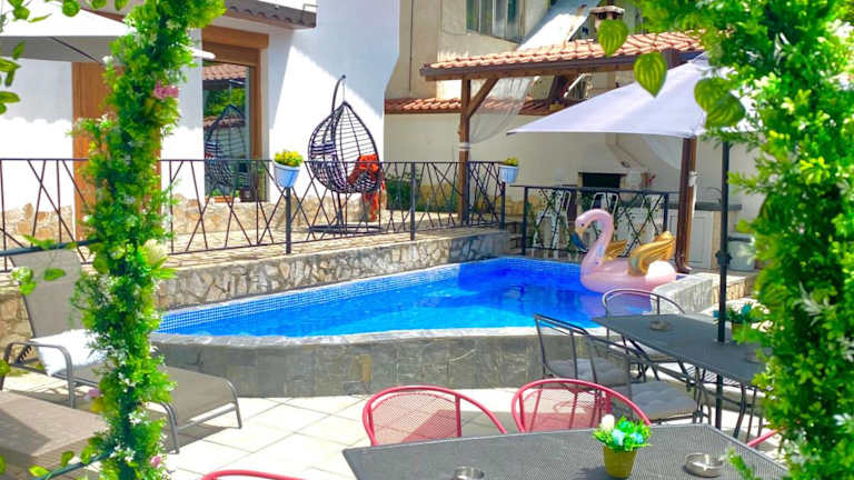 Die Unterkunft Къща за гости Casa Per Te bietet eine heimelige Atmosphäre mit einem saisonalen Aussenpool, einem Garten und einer Terrasse. Die Gäste haben die Möglichkeit, die schöne Umgebung zu geniessen und sich am Pool zu entspannen.
