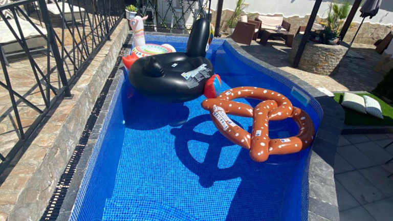 Das Ferienhaus mit Klimaanlage verfügt über 4 Schlafzimmer, ein Wohnzimmer sowie eine voll ausgestattete Küche mit Kühlschrank und Kaffeemaschine. Es sind 4 Badezimmer vorhanden, die jeweils mit einer Dusche und einem Haartrockner ausgestattet sind. Handtücher und Bettwäsche werden zur Verfügung gestellt.