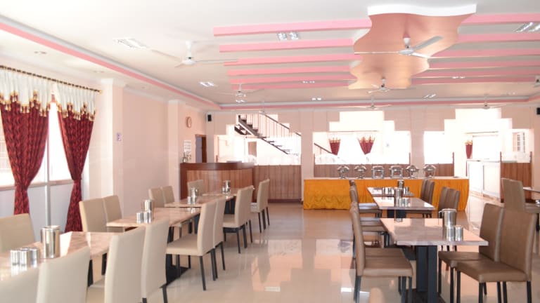 Das Hotel bietet ein kontinentales oder vegetarisches Frühstück an. Es gibt ein Restaurant, das eine Auswahl an Speisen bietet, sowie eine Bar für verschiedene Getränke.