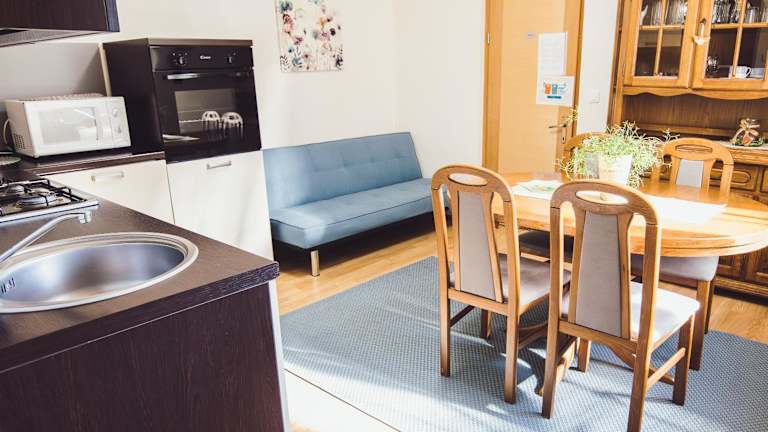 Die Ferienwohnung umfasst 2 Schlafzimmer, ein Wohnzimmer und eine voll ausgestattete Küche mit Kühlschrank und Wasserkocher. Es gibt ein Badezimmer mit Badewanne und kostenlosen Pflegeprodukten. Handtücher sowie Bettwäsche werden bereitgestellt.