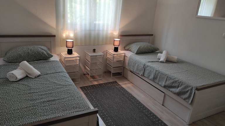 Das Ferienhaus besteht aus 2 Schlafzimmern, einem Wohnzimmer und einer voll ausgestatteten Küche, die mit einem Kühlschrank und einem Wasserkocher versehen ist. Das Badezimmer verfügt über eine Dusche und einen Haartrockner. Handtücher und Bettwäsche werden zur Verfügung gestellt.
