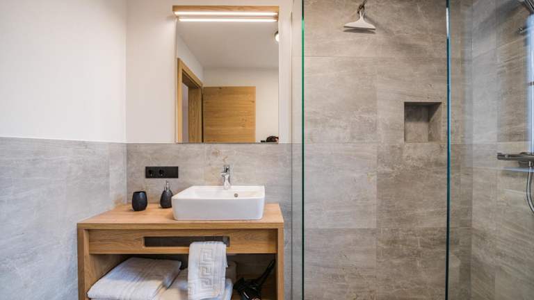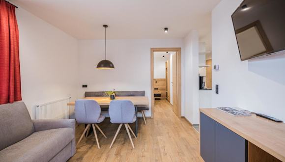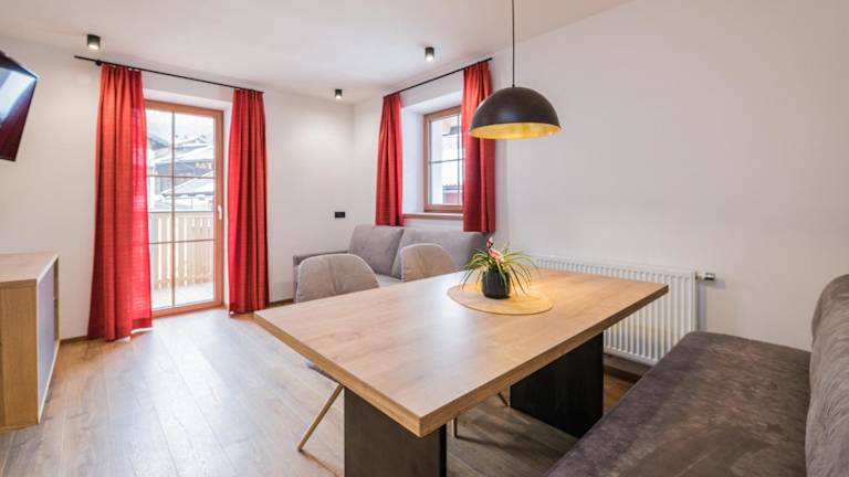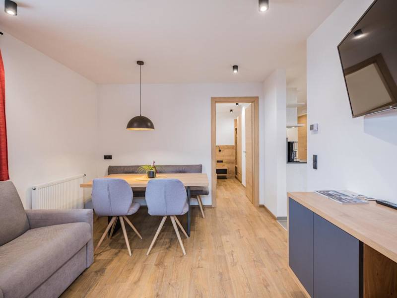 Die Ferienwohnung im Kuenz Dolomites App 4 bietet ein Schlafzimmer, ein Wohnzimmer mit TV, einen Balkon mit Bergblick sowie eine gut ausgestattete Küche mit Kühlschrank und Geschirrspüler. Das Badezimmer ist mit einer Dusche ausgestattet und Handtücher sowie Bettwäsche werden bereitgestellt. Ein Abstellraum für Skier ist ebenfalls vorhanden.