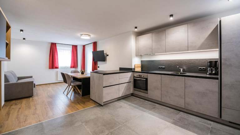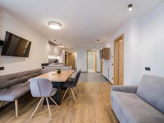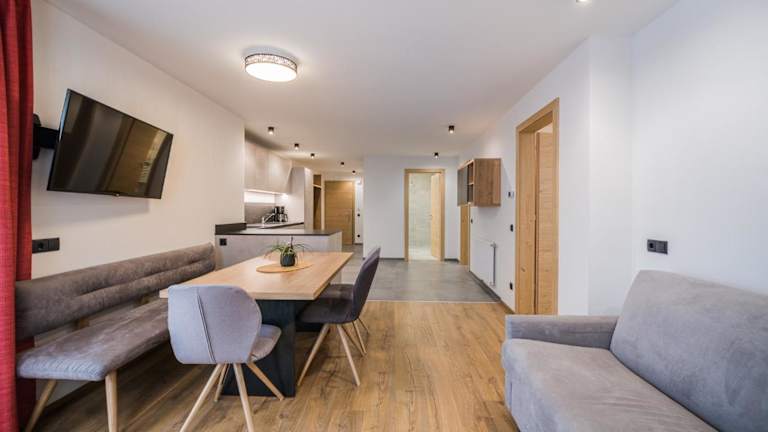 Die Ferienwohnung verfügt über 2 Schlafzimmer, ein Wohnzimmer mit TV, eine gut ausgestattete Küche mit Kühlschrank und Geschirrspüler sowie 2 Badezimmer mit Dusche. Zudem bietet die Wohnung einen Balkon mit Bergblick und handtücher sowie Bettwäsche werden zur Verfügung gestellt.