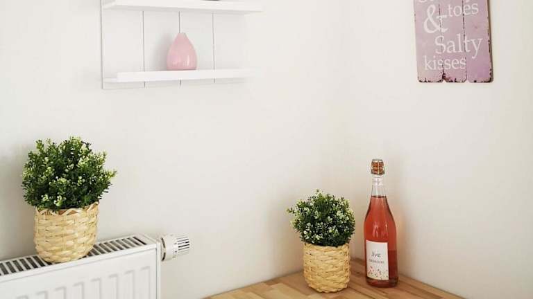Die Ferienwohnung verfügt über ein Schlafzimmer, ein Wohnzimmer und eine voll ausgestattete Küche, die unter anderem mit einem Kühlschrank und einer Kaffeemaschine ausgestattet ist. Zudem gibt es ein Badezimmer mit einer Dusche und einem Haartrockner.