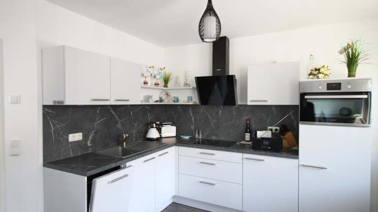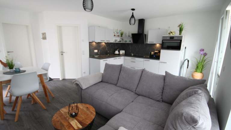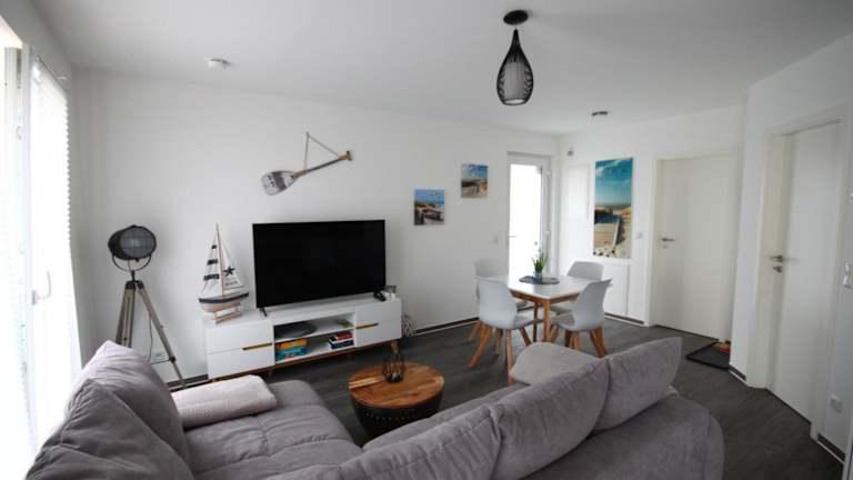 Die Ferienwohnung verfügt über ein Schlafzimmer, ein Wohnzimmer und ein Badezimmer mit Dusche. Ausgestattet ist sie mit einem Flachbild-TV sowie einer gut eingerichteten Küche, die einen Kühlschrank und einen Geschirrspüler umfasst. Bettwäsche und Handtücher sind nicht im Zimmerpreis inbegriffen, können jedoch gegen eine Gebühr ausgeliehen werden.