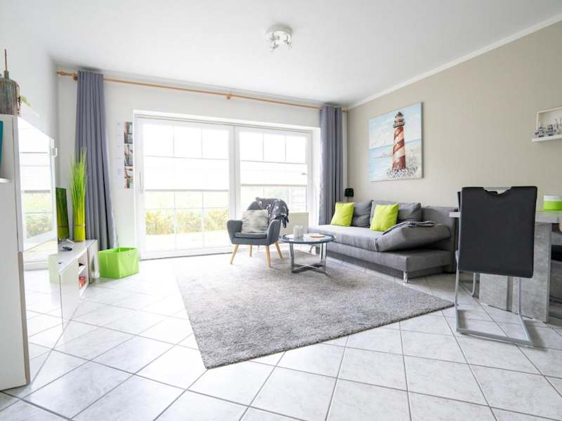 Die Ferienwohnung ist im Erdgeschoss gelegen und verfügt über 2 Schlafzimmer, einen TV sowie eine voll ausgestattete Küche mit Kühlschrank und Geschirrspüler.